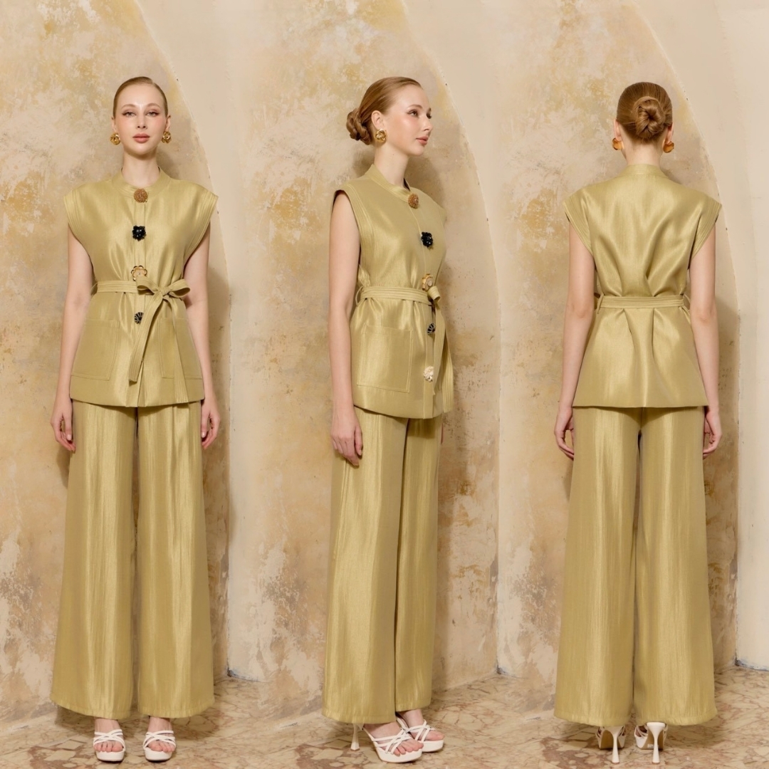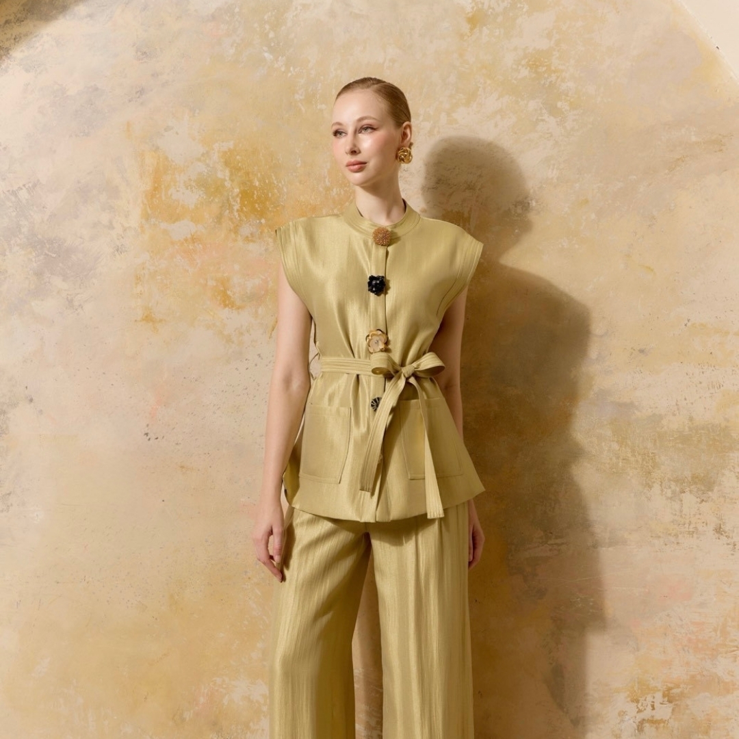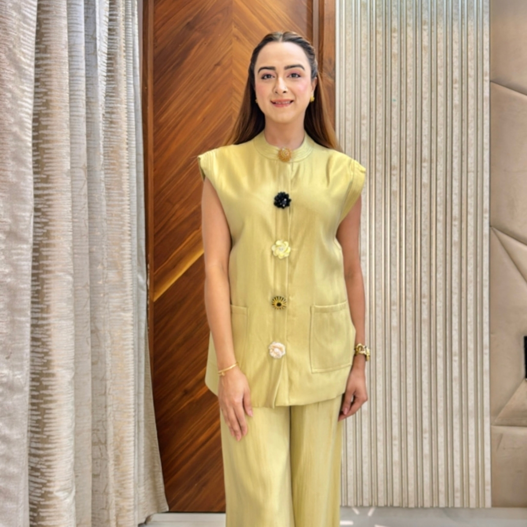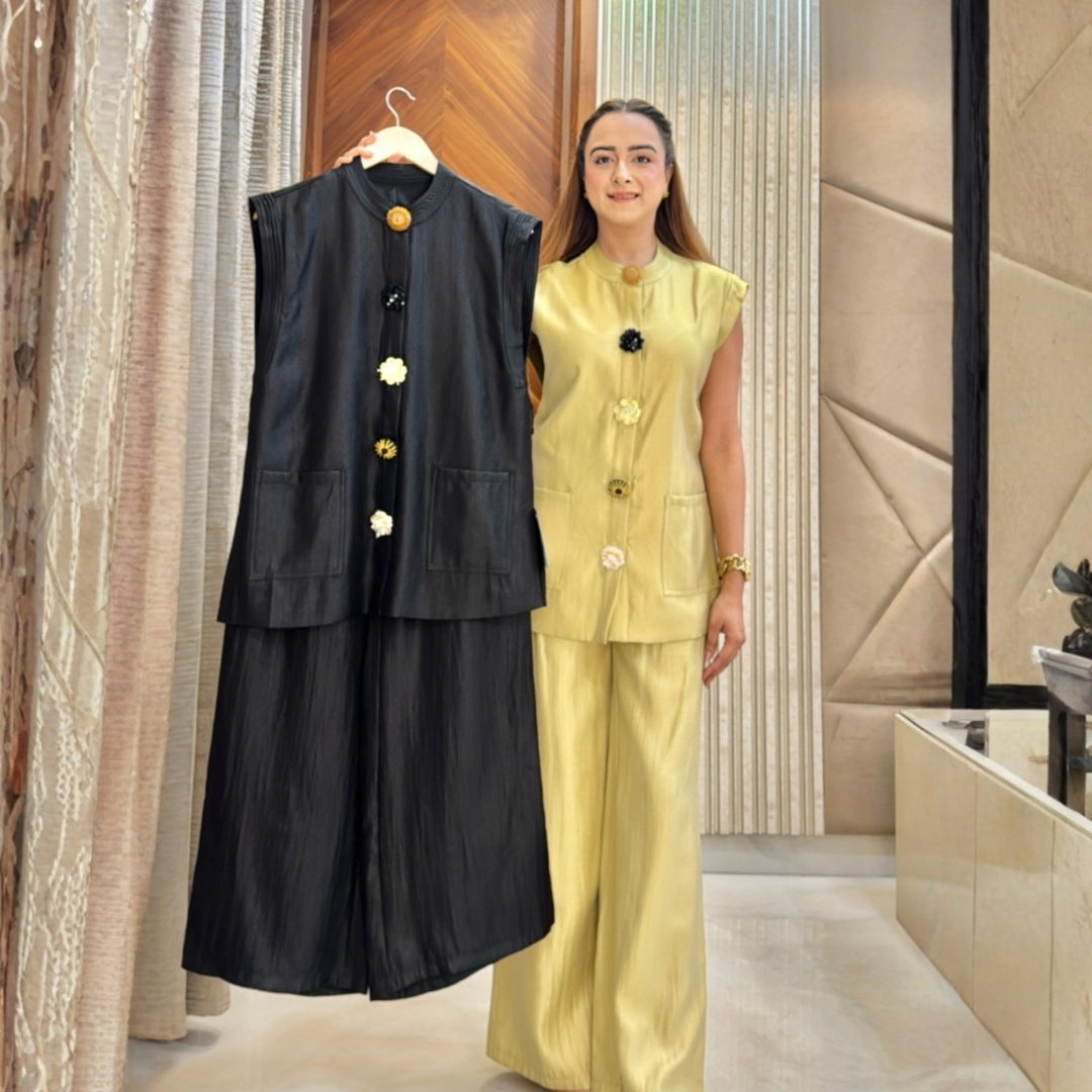 Elevate understated elegance with the Embellished Button Set, a perfect fusion of simplicity and sophistication. The sleeveless structured top adorned with statement embellished buttons adds a hint of luxury, while the coordinated trousers ensure effortless comfort. Ideal for daytime events, travel, or polished casual wear — this set embodies refined minimalism with a touch of glam.