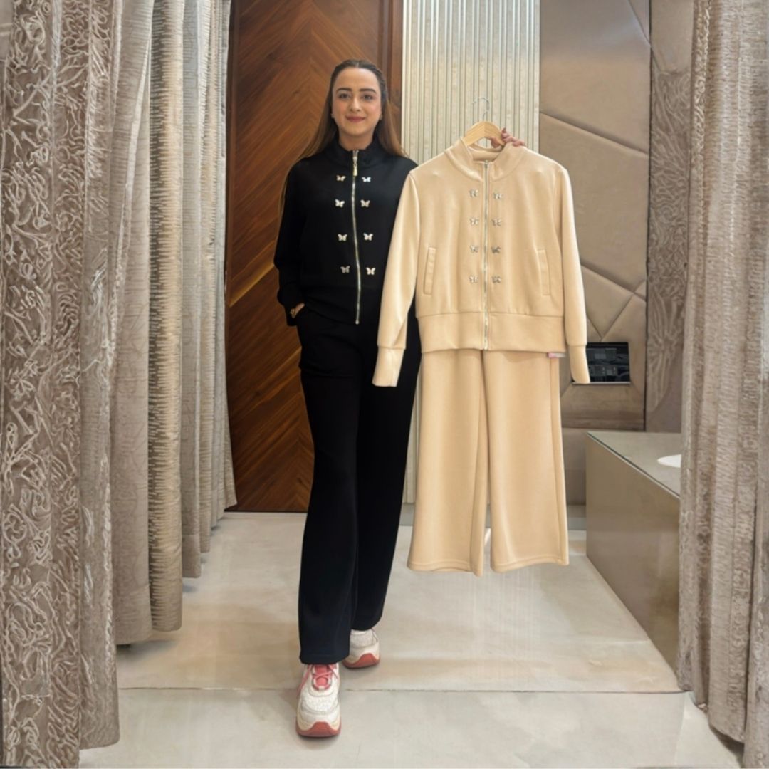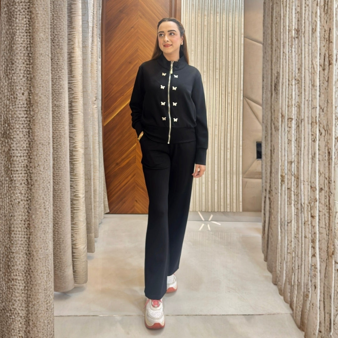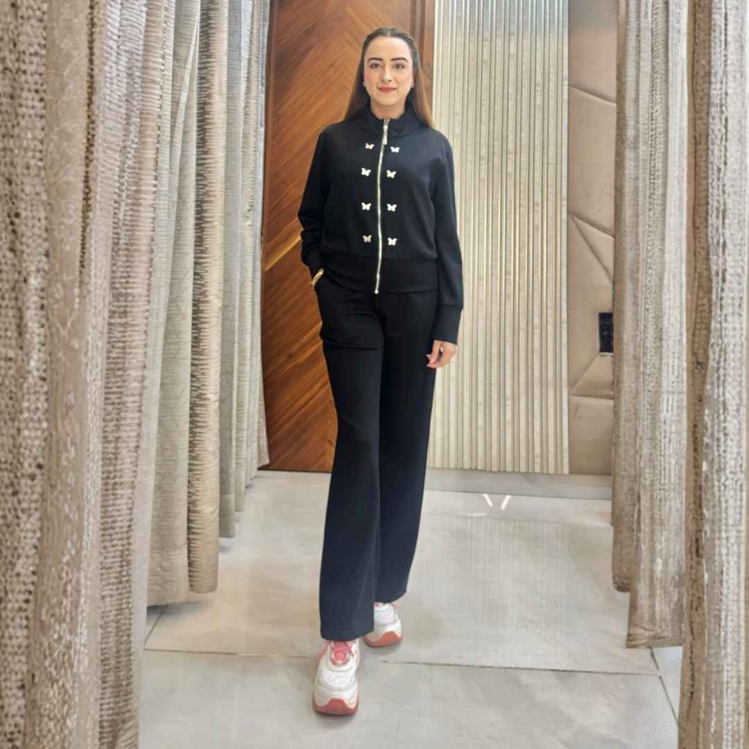 Flaunt your glow with the Metal Butterfly Tracksuit, crafted for those who love a hint of sparkle in their stride. The metallic butterflies add the perfect edge to its luxe comfort fit, turning your casual look into a glam statement.