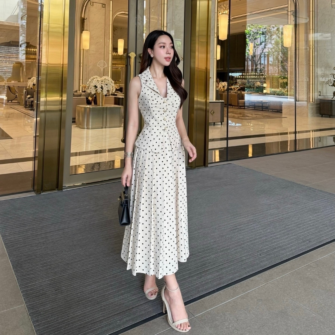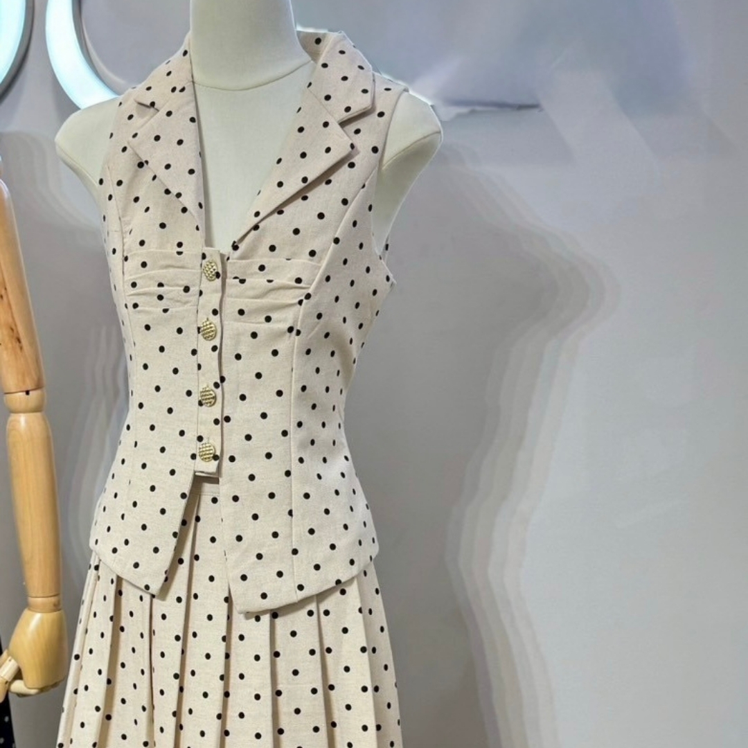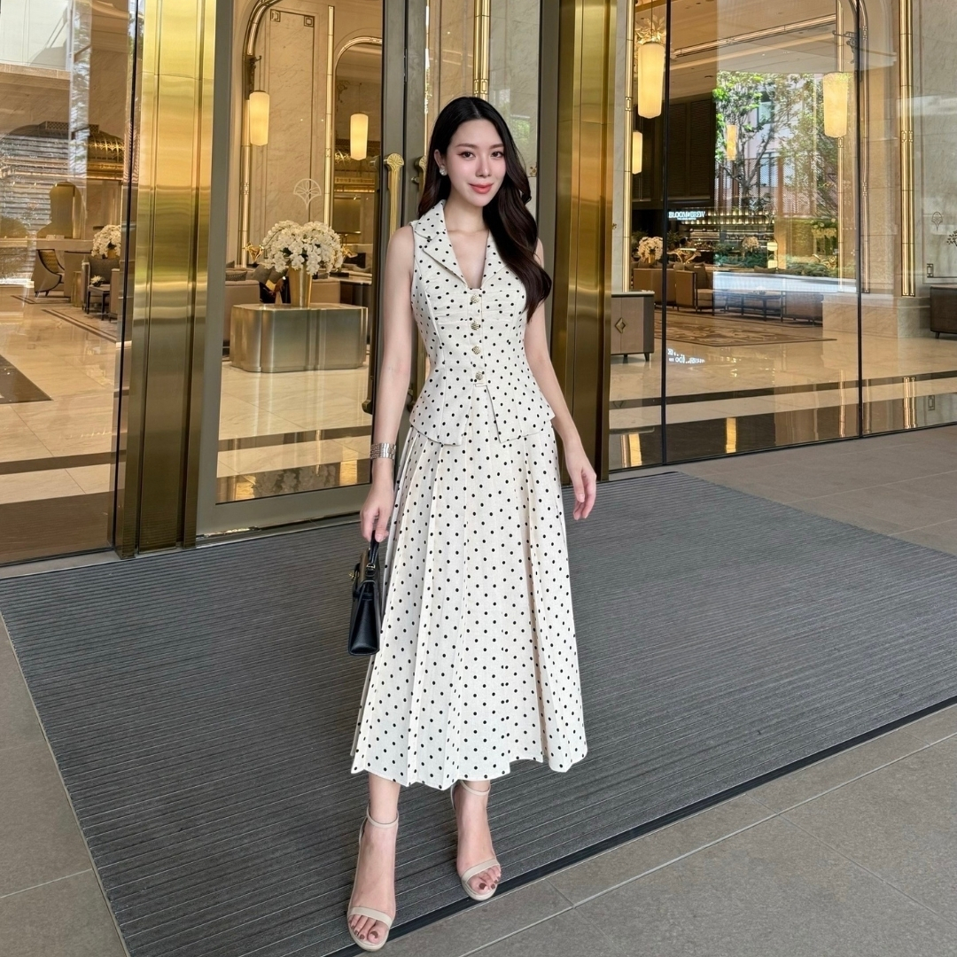 Classic meets contemporary in the Polka Dot Skirt Set, designed to bring timeless charm to modern silhouettes. The sleeveless collared top paired with a flared midi skirt creates an effortlessly flattering look, perfect for brunches, vacations, or elegant day events. Light, breezy, and full of personality — this set redefines everyday sophistication.