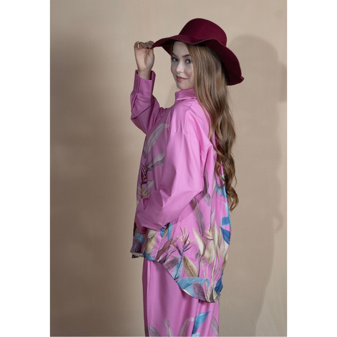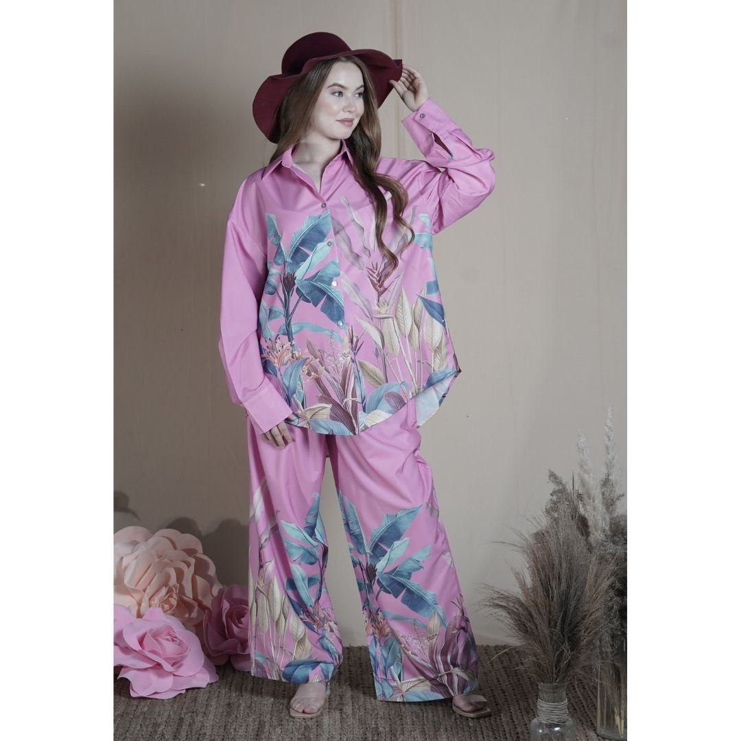Step into ultimate sophistication with the Printed Satin Co-ord Set, where comfort meets couture. Designed in a relaxed silhouette with a soft pink hue and intricate vintage-inspired print, this satin set brings effortless glamour to your day-to-night wardrobe.