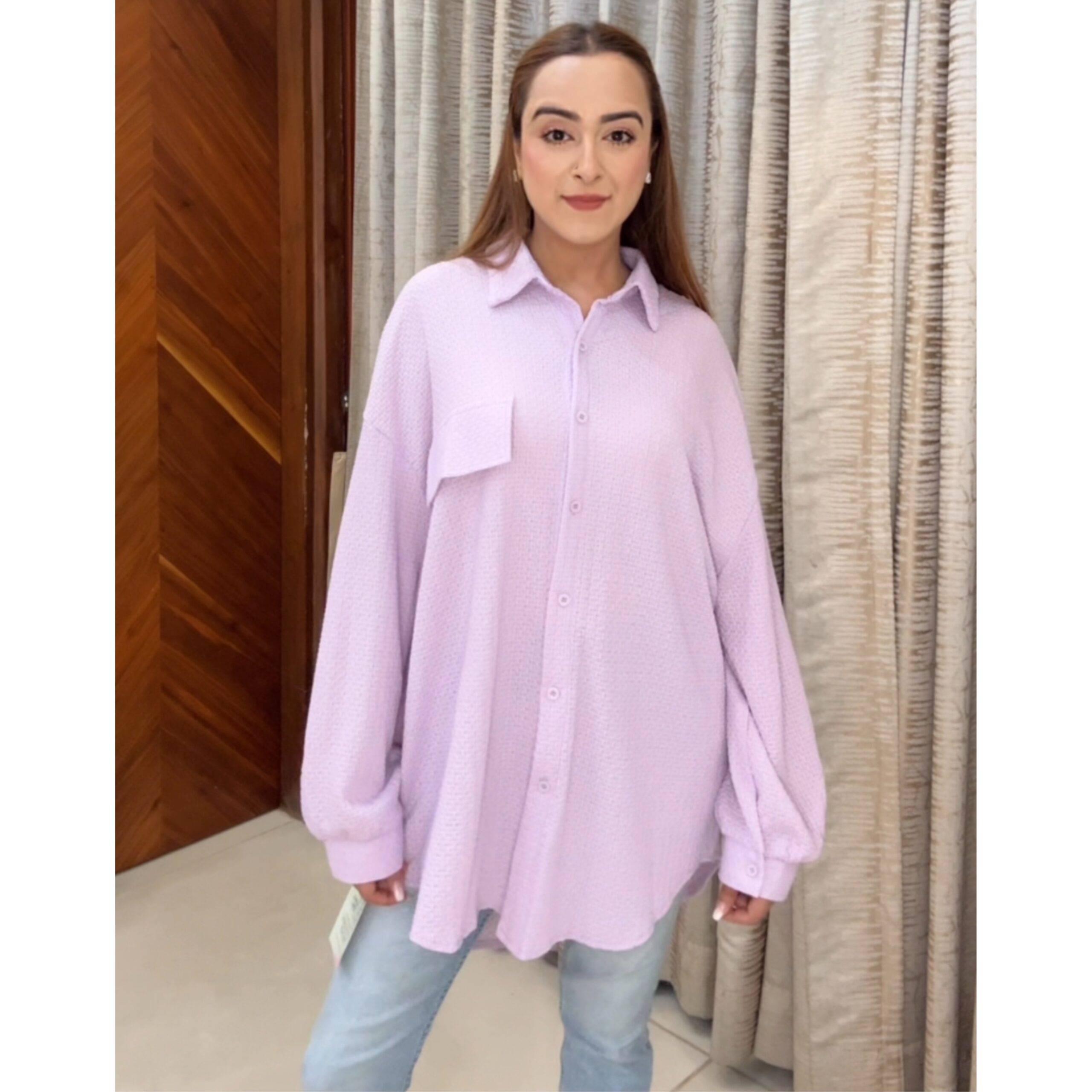 Meet your new layering essential: the Self Shirt in a dreamy lavender hue. With its oversized fit, textured fabric, and classic button-down design, this piece adds a relaxed yet refined vibe to your everyday wardrobe.