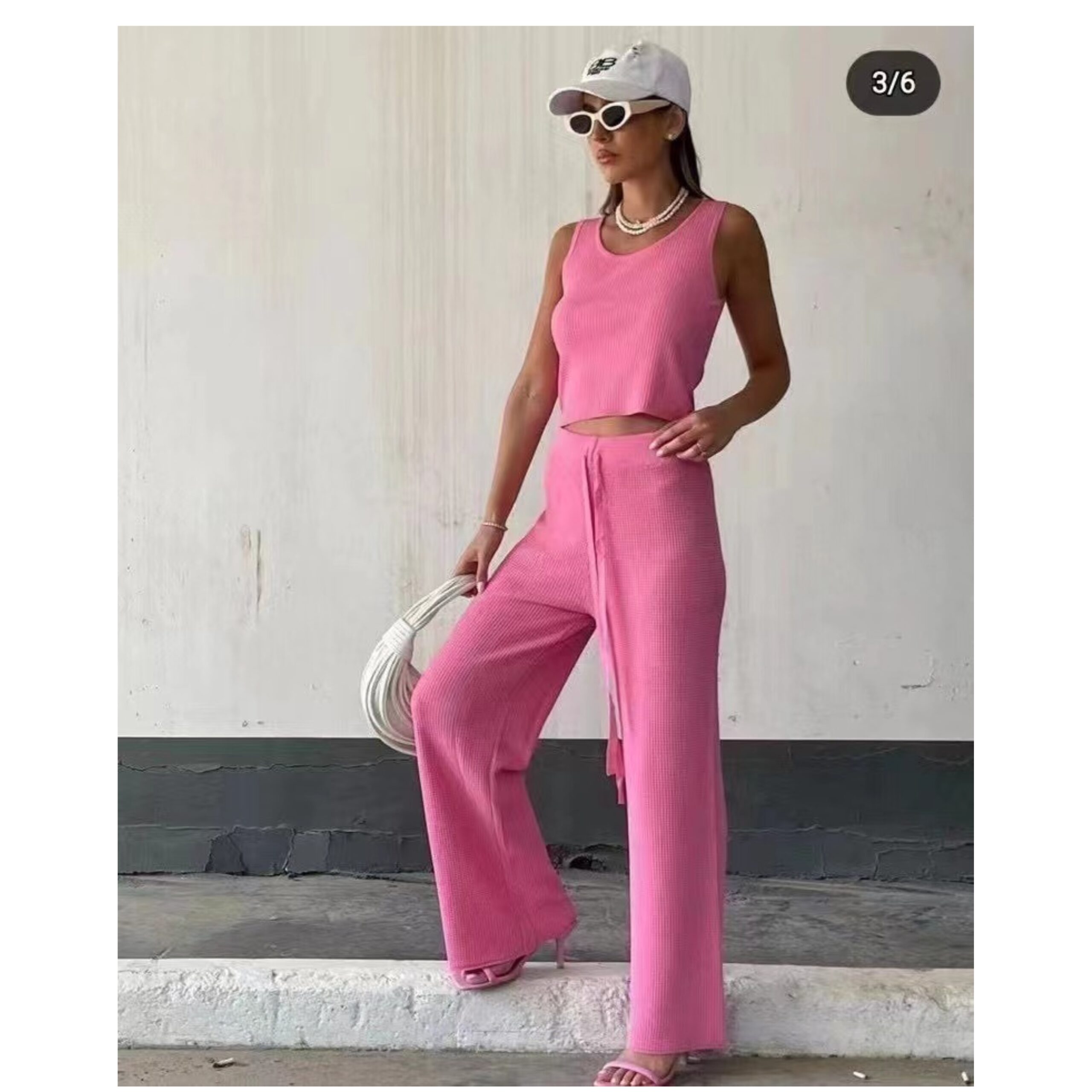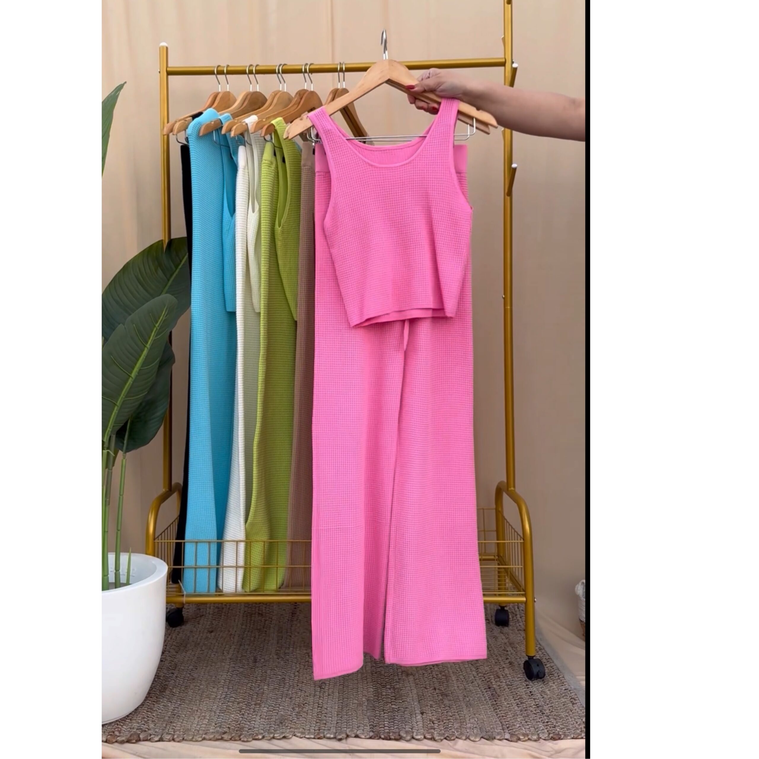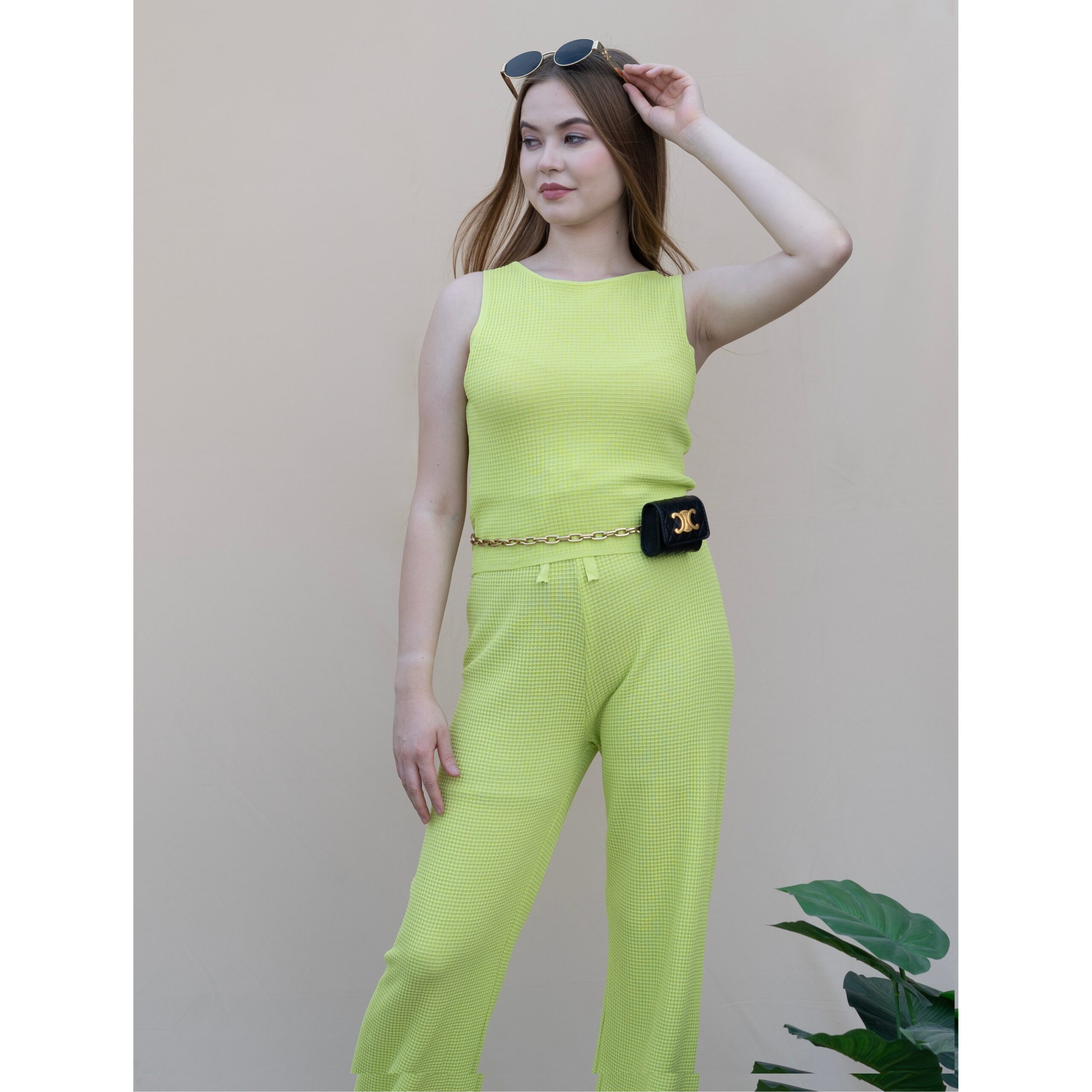 Infused with energetic vibes and elevated style, the Sporty Colourful Coordset is the perfect pick for women who like to make a statement even when they’re off-duty. Tailored from breathable, stretch-knit fabric in a vibrant lime hue, this sleeveless top and matching wide-leg pants are designed for movement, comfort, and confidence.